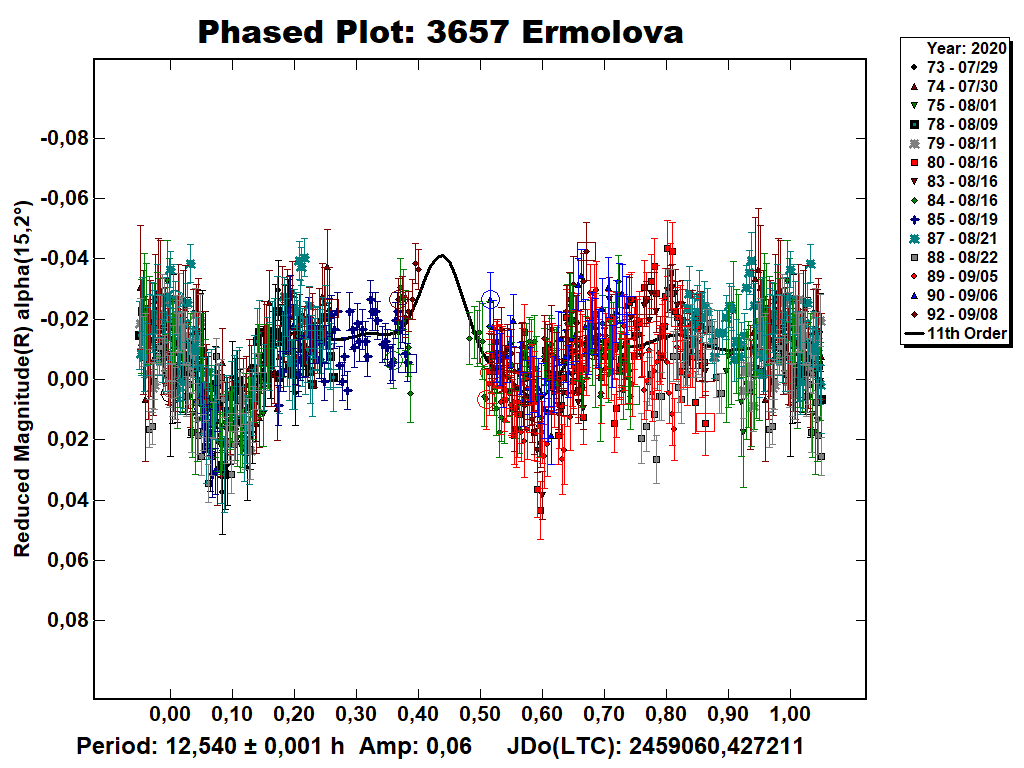L'asteroide 3657 Ermolova è binario! Lo annuncia la CBAT 4861 del 28/09/2020.