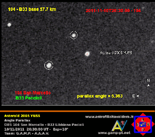 La sera del 10/11/2011, l'asteroide è stato osservato in contemporanea dagli osservatori 104 San Marcello e B33 Libbiano Peccioli.