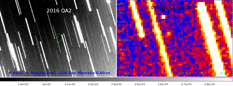 Di seguito l'immagine dell'asteroide 2016 QA2 ripreso da San Marcello